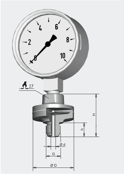 Пример монтажа модели уплотнения диафрагмы 990.38, непосредственно связанный с даткой давления EN837-1